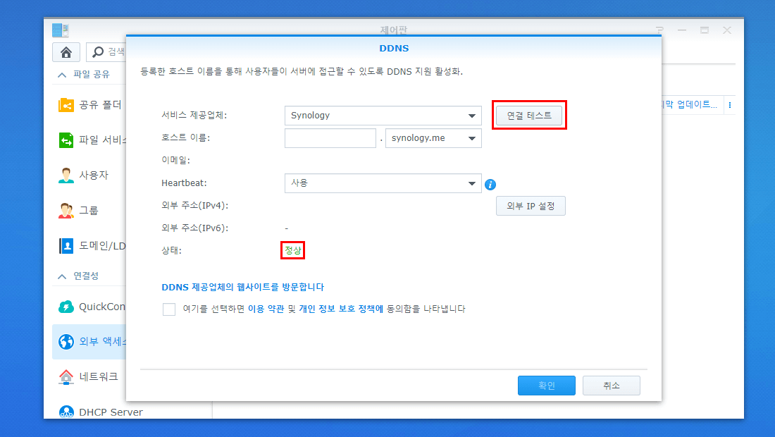 그리고 이 DDNS를 시놀로지의 NAS는 기본적으로 제공해 주고 있습니다.