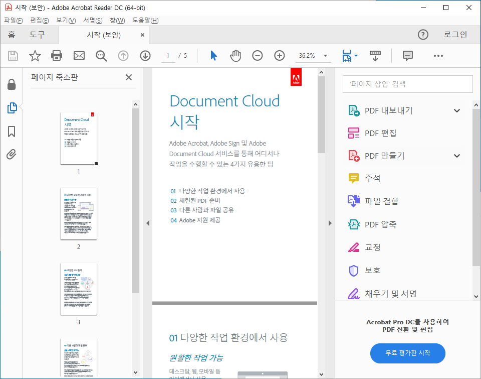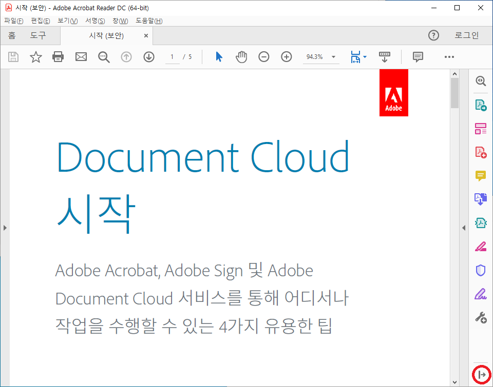간단한 설정만으로 아크로뱃 리더의 도구 창 숨기는 방법을 알아봤습니다.