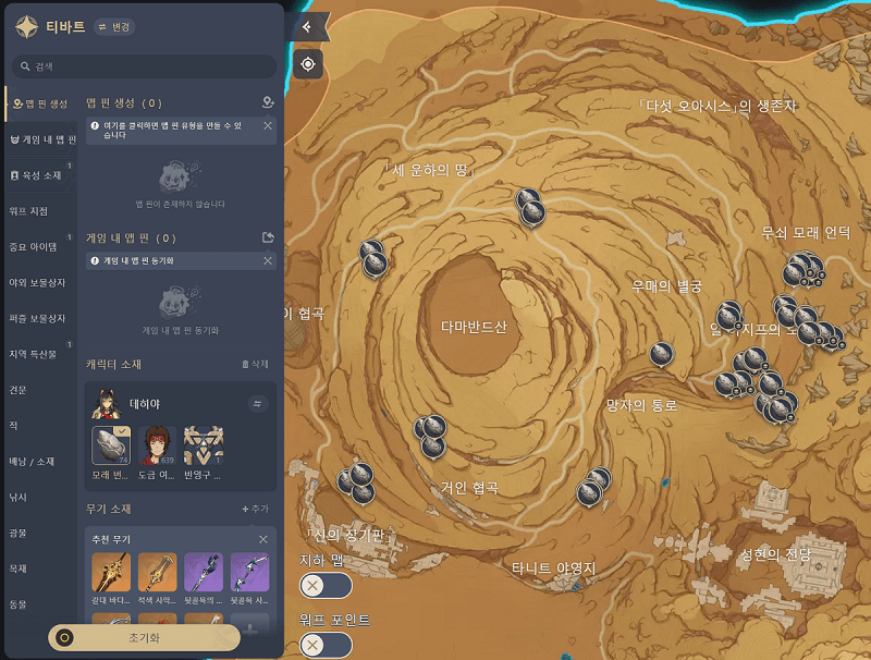 원신 지도를 오랜만에 들어가 보니 더 편하게 인터페이스가 바뀌었더군요