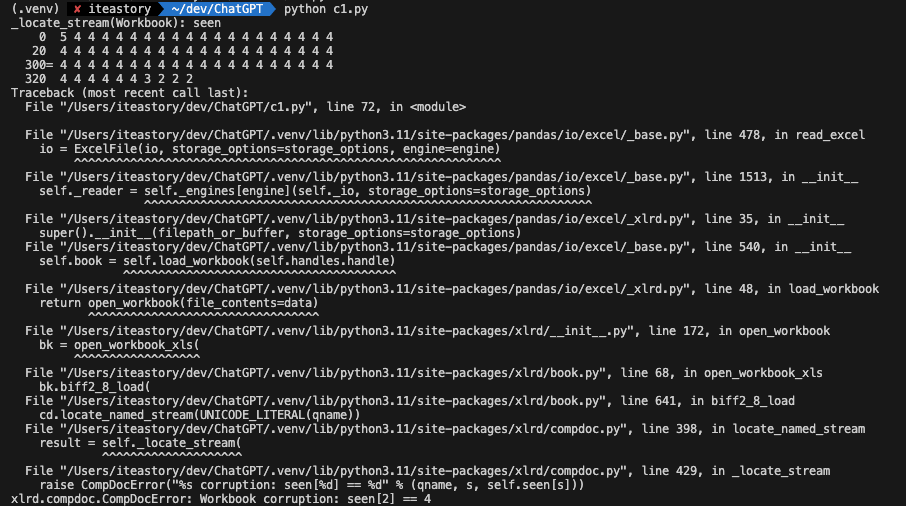 내 시간을 많이 잡아먹은 에러 xlrd.compdoc.CompDocError: Workbook corruption: seen[2] == 4